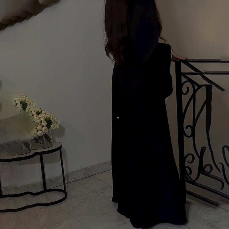 Fashion Loose Leek Solid Color Round Collar Waist-Purity Temperament Dress