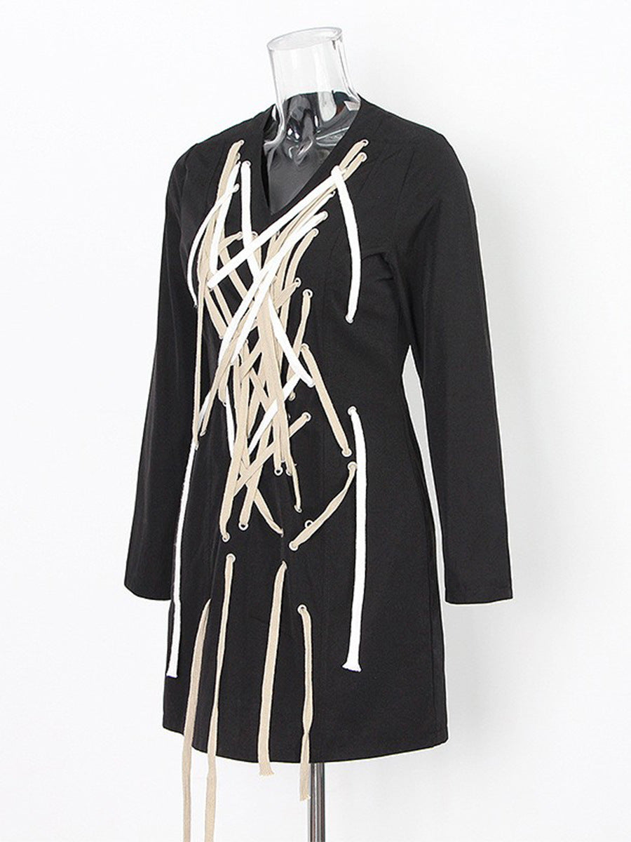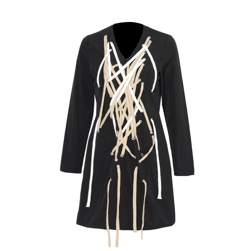 Fashion Trend Dress Women's Dress 2025 Spring New V-Neck Design Stitching Strap Strap To The Belt Short Skirt