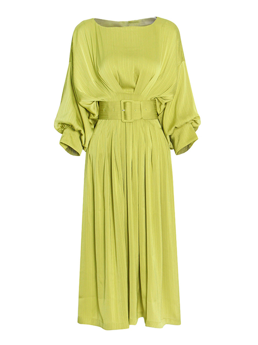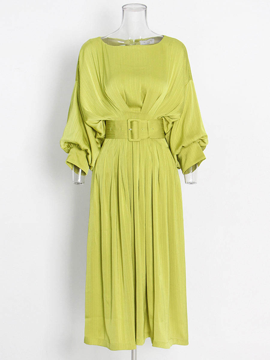 French Style Dress 2025 Summer New Round Collar Collar With Shoulder Sleeve Texture Waist Dress Dress Dress Woman