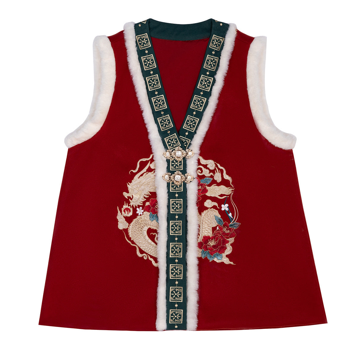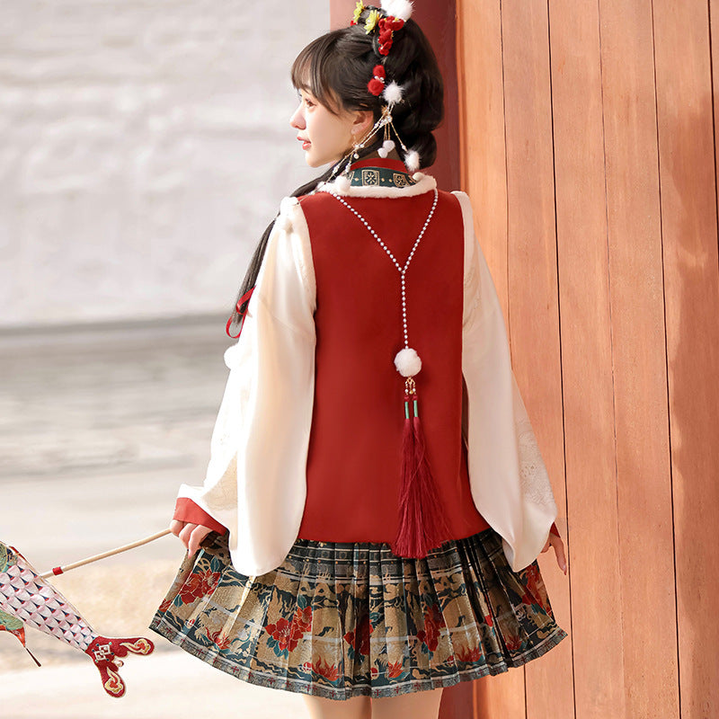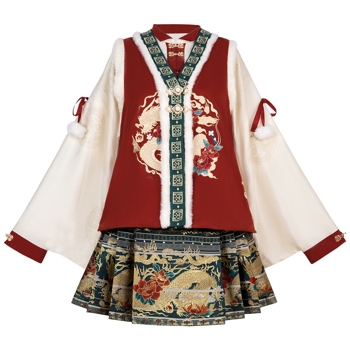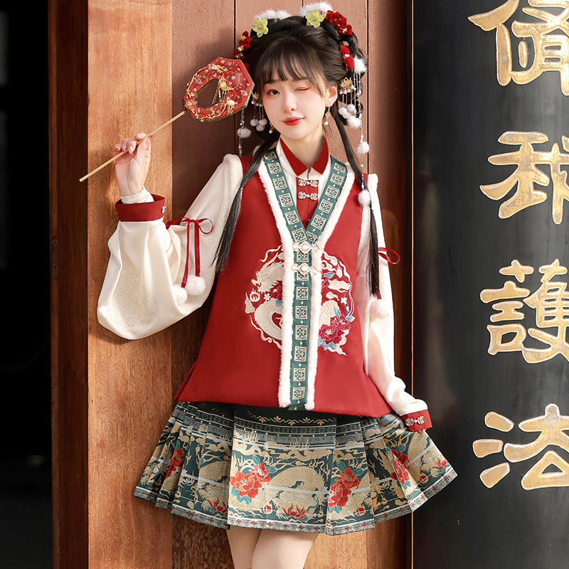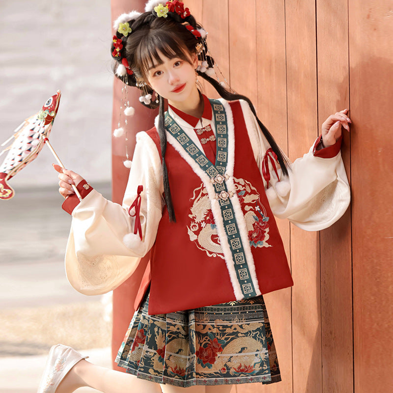 Fulong Yingchun Hanfu Women Chinese Wind Han Element Blouse Vest Half Dress Suit 8941