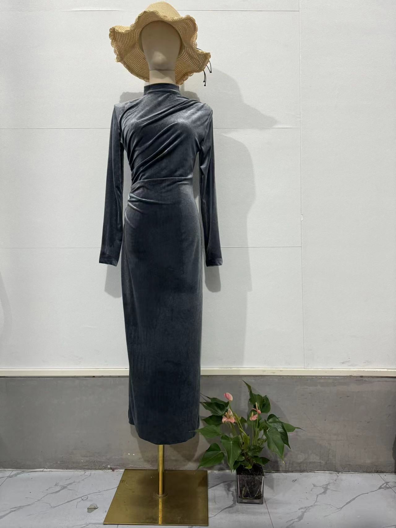 Golden Velvet Body Sexy Waist Thin Irregular Dress Dress Dress Dress Woman