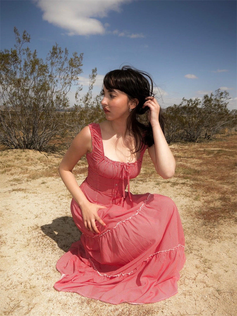 Hadid's Same Seaside Holiday French Sling Dress 2025 Summer New Lattice Beach Dress