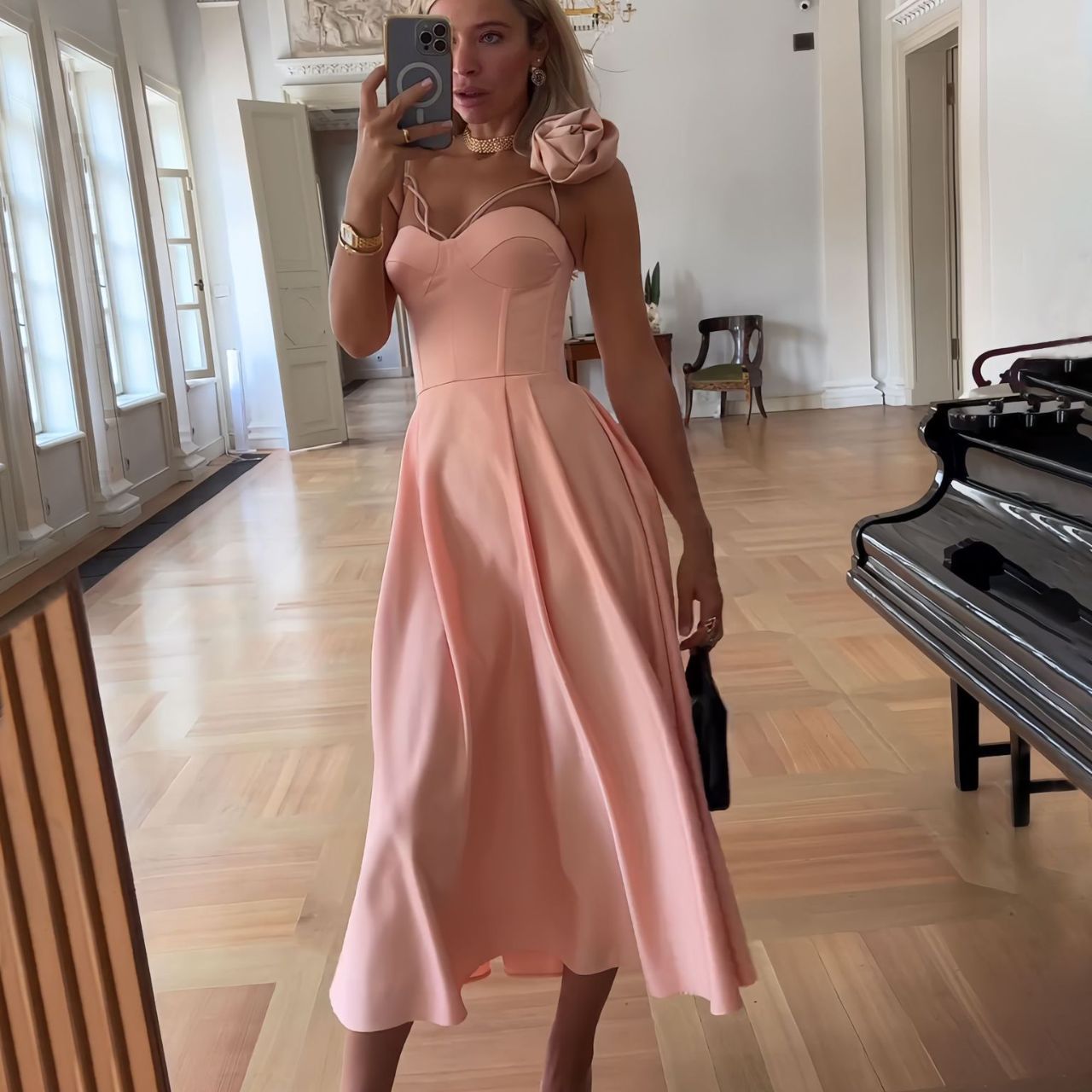 High-End Dress French Dress Sexy Hollow Sling Skirt Three-Dimensional Flower Long Dress