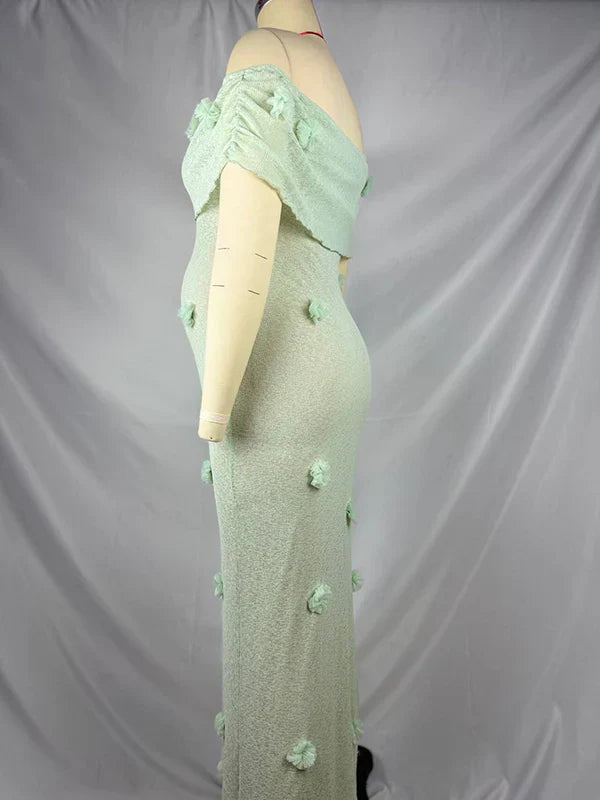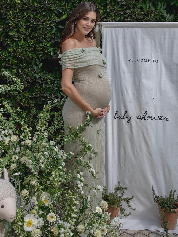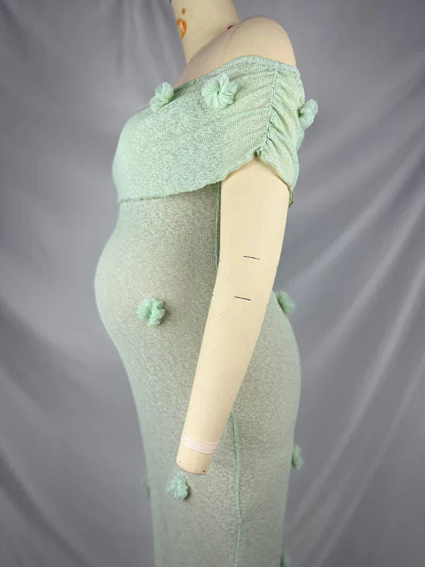 Knit 3D Flowers Off Shoulder Elegant Maternity Maxi Dress Maternity