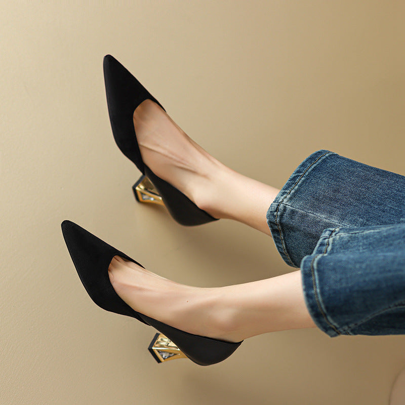 Large-Size Shoes Small Fragrant Wind Sharp High Heels New Women's Shoes Light Color Fashion Single Shoes High Quality Shoes