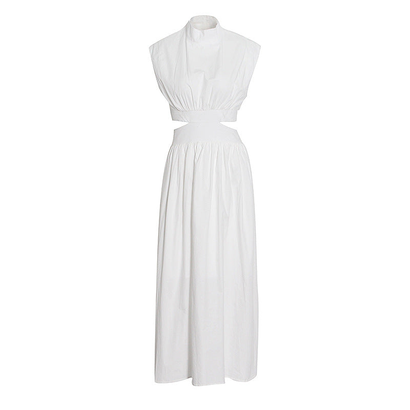 Leisure Dress 2025 Summer New Simple Style Collar Sleeveless Hollow Design Solid Female Dress