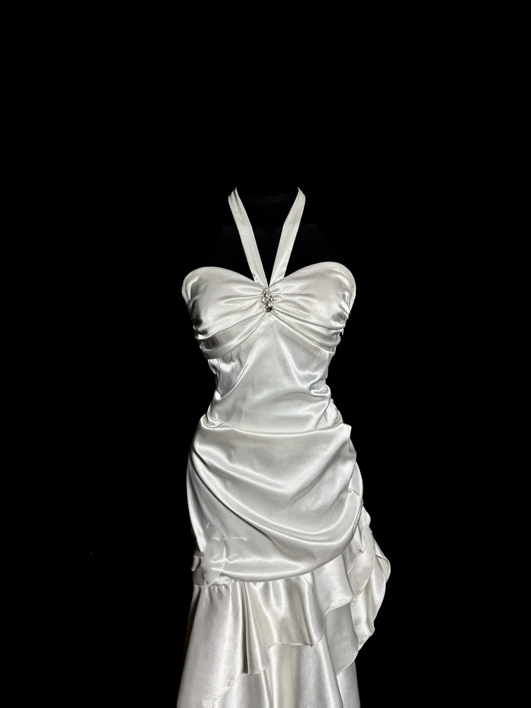 Mermaid Halter Satin High Low Evening Dress Prom Dresses SD2915 HZ0628
