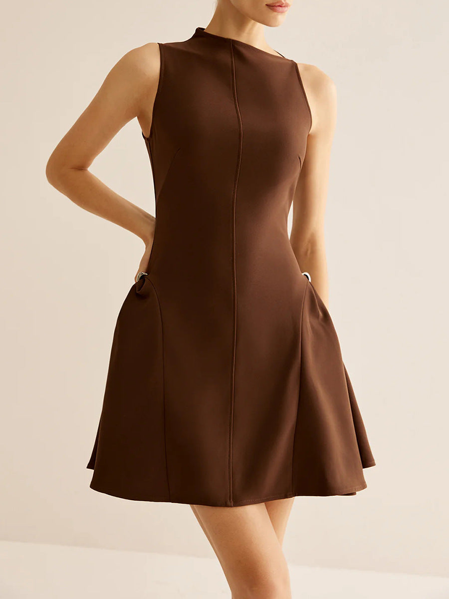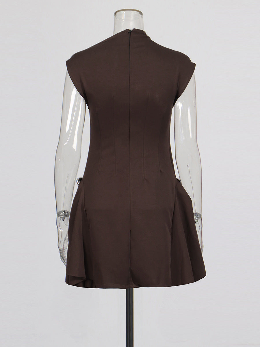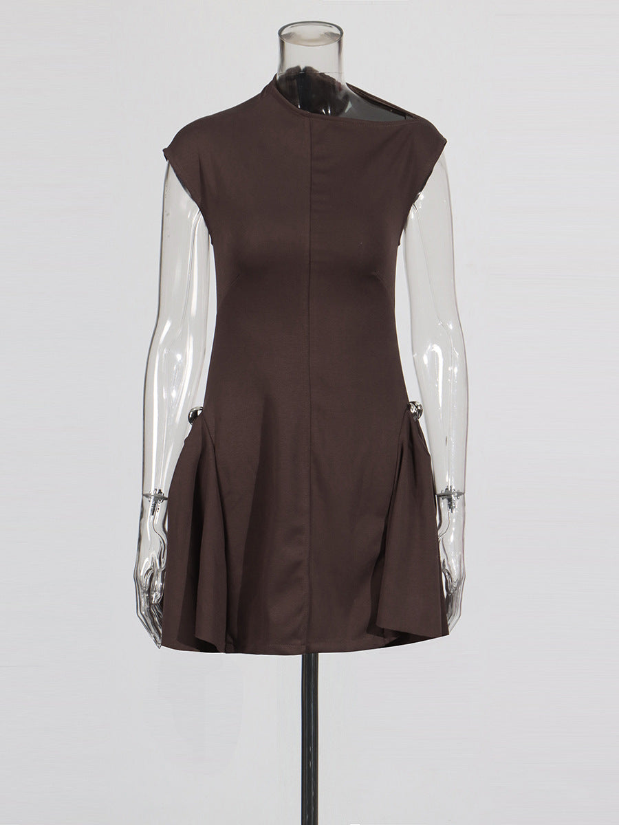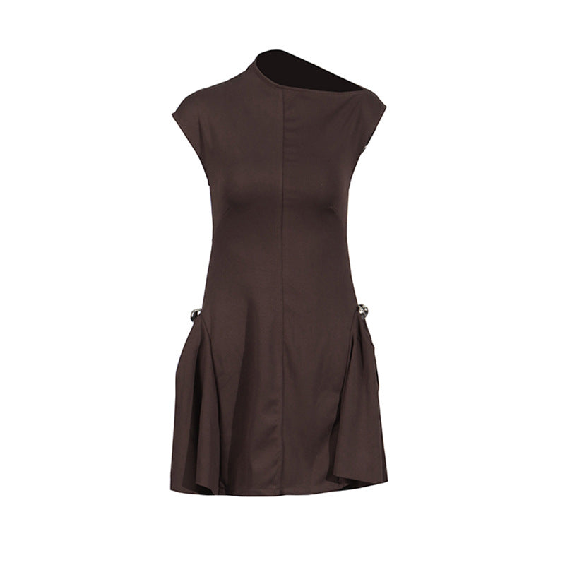 Name Style Wind Irregular Dress 2025 New Collar Metal Buckle To Receive Waist Dress Women's Summer