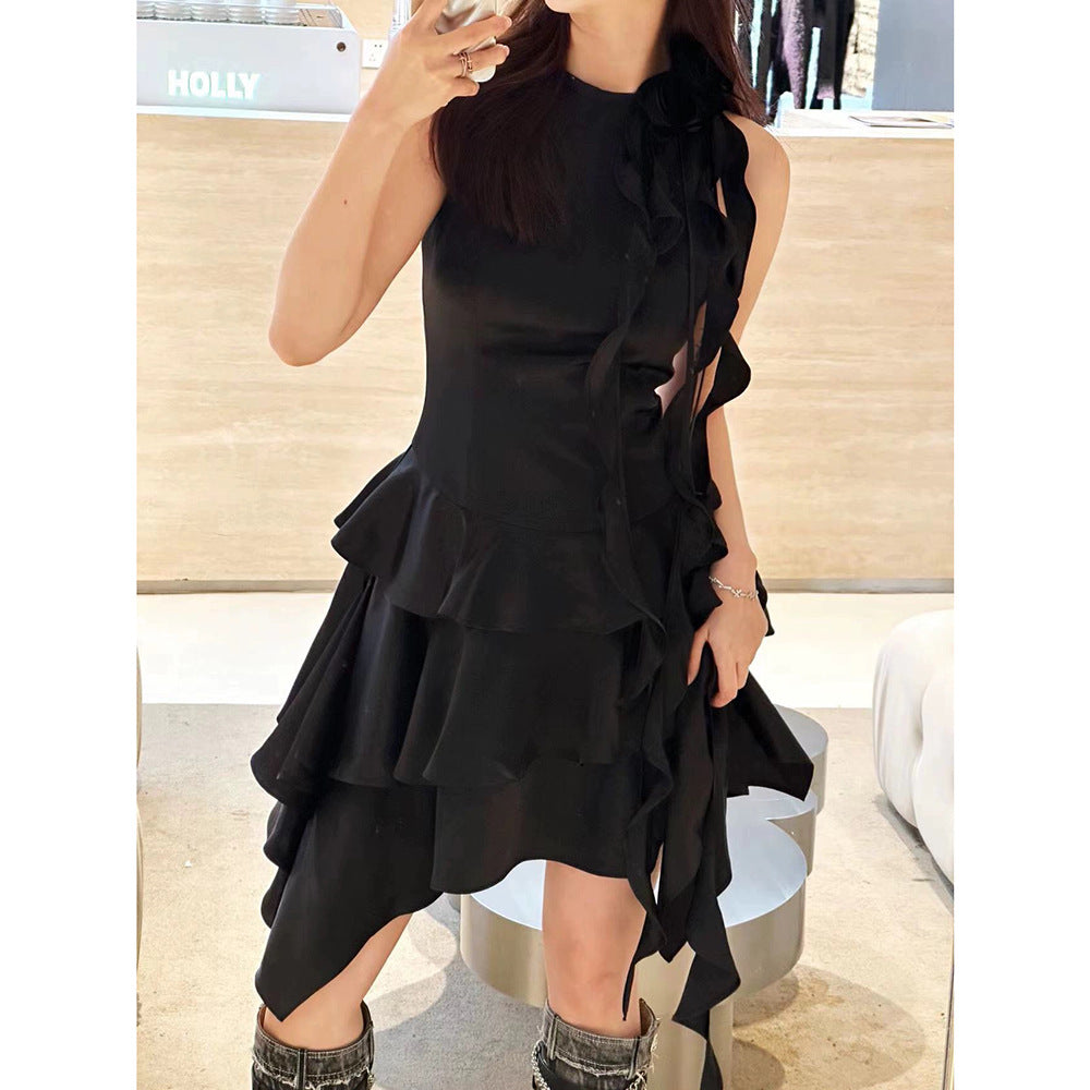New Sexy Lotus Side Flowers Hanging Neck Skirt Atmosphere Feel Flowing Sleeveless Short Dress
