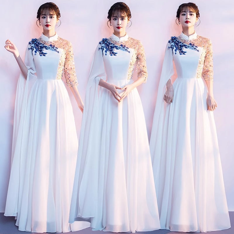 Performance Dress Female Dress Adult White Solo Contest Poetry Recitation Guzi Ancient Style Dress 2025 New