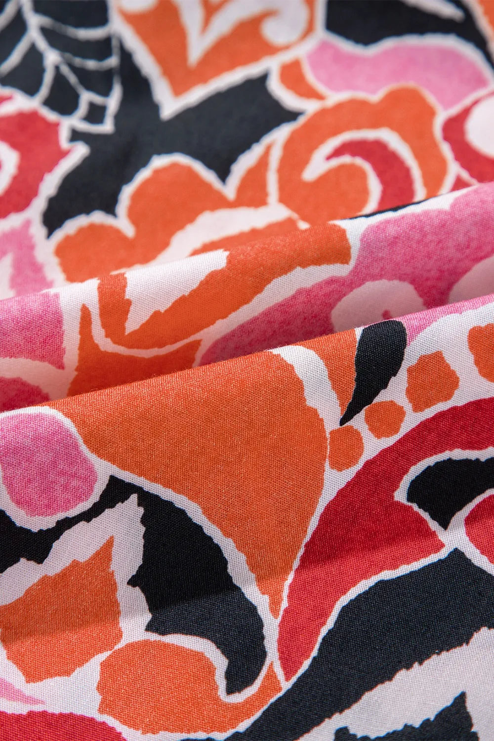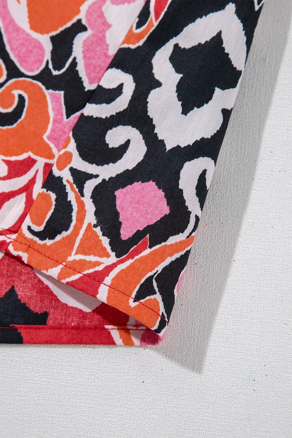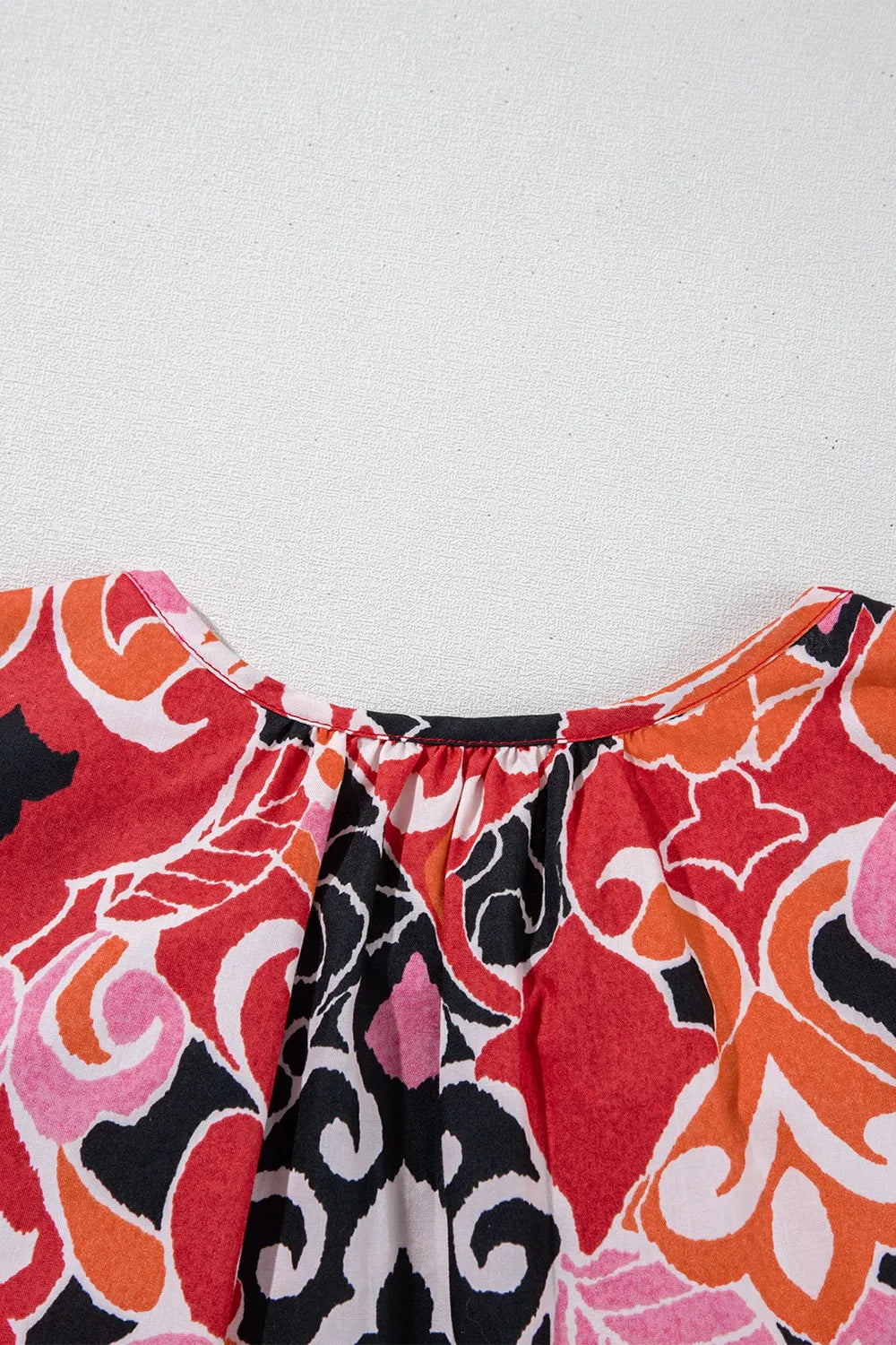 Print Split Neck Short Puff Sleeve Blouse DJPT