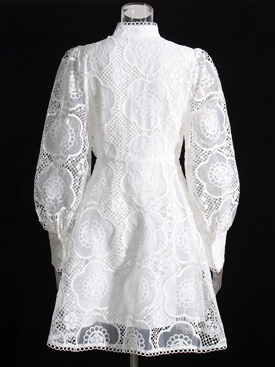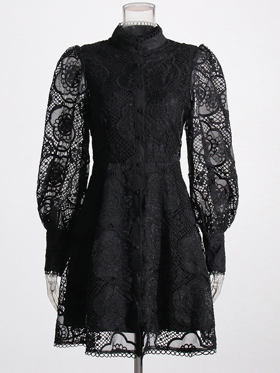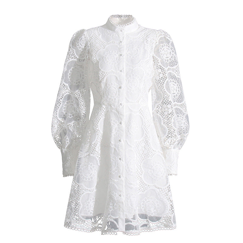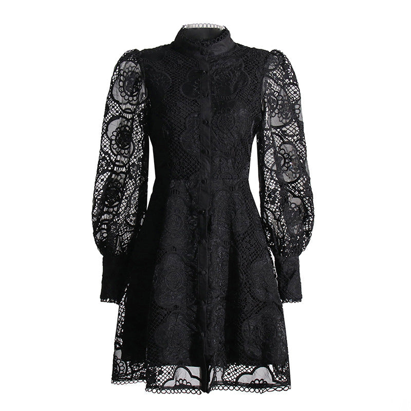 Retro Court Dress Women's Dress 2025 Early Spring New Lace Embroidery Jed Flower Collection Waist Thin Skirt