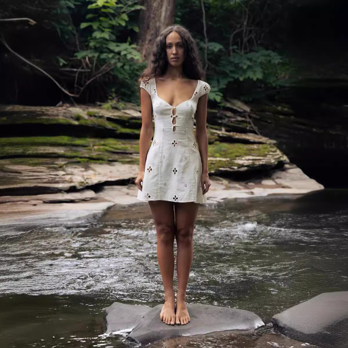 Retro Embroidered Hollow Dress Woman 2024 Spring And Summer New Pure Sexy Hottie Seaside Holiday Dress