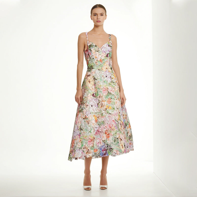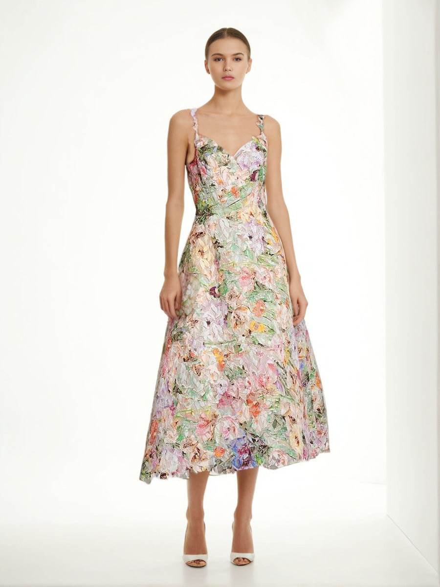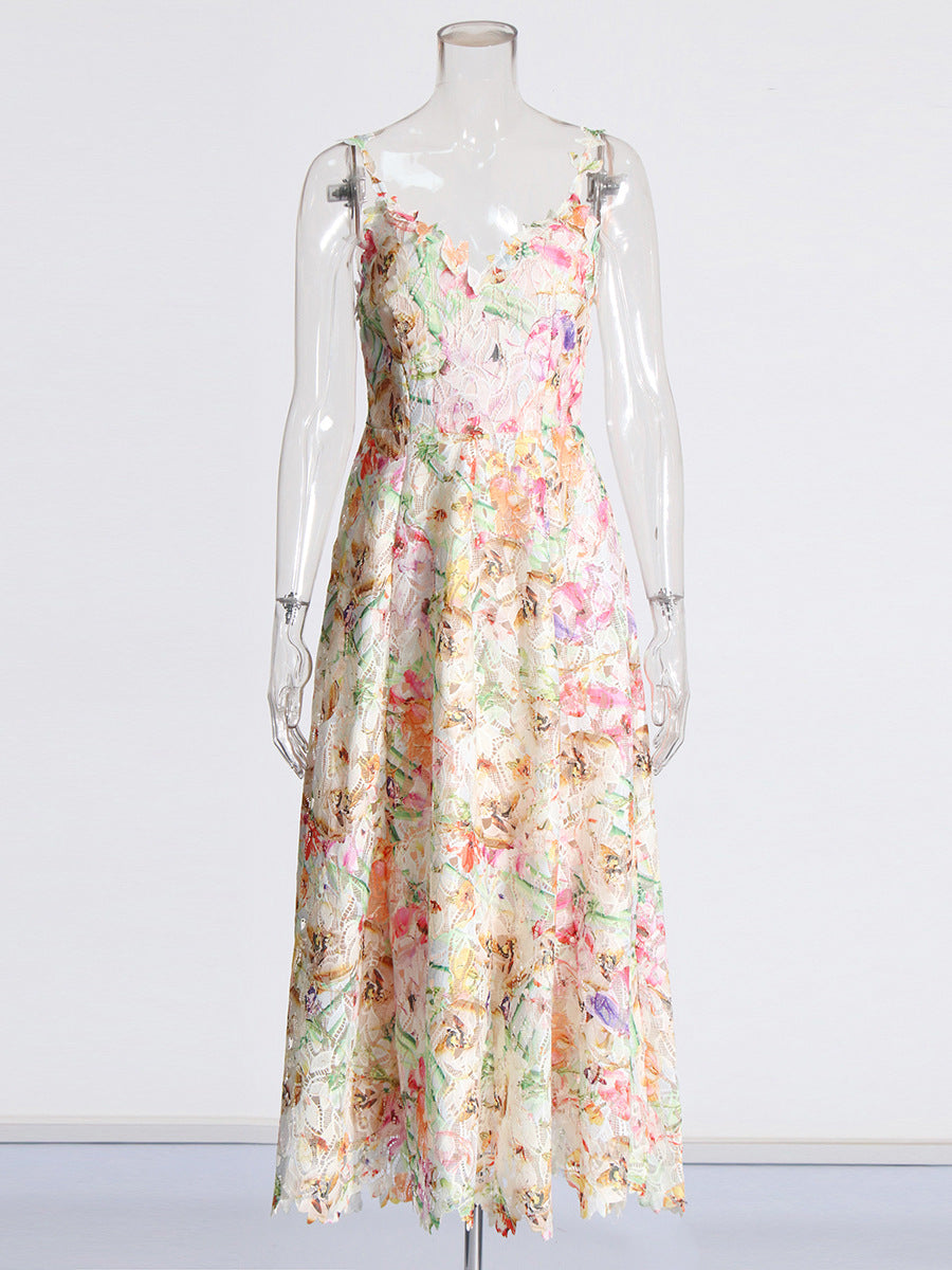 Sexy Style Dress 2025 Spring New Lace Sling Embroidered Flowers High-Rise Dress Woman