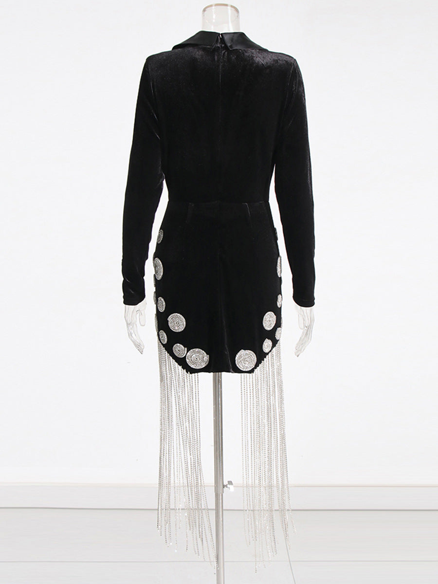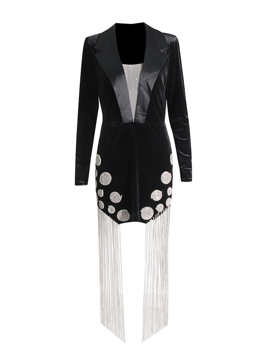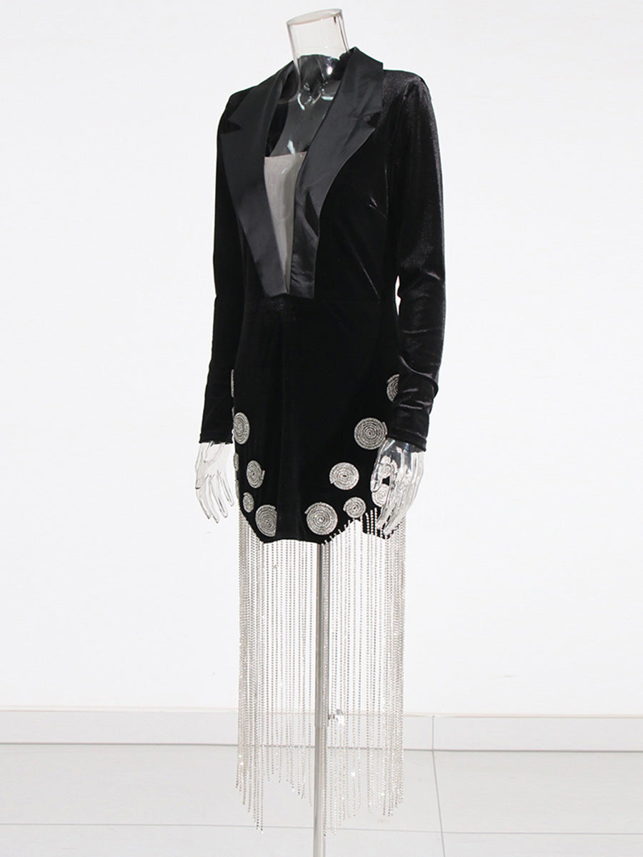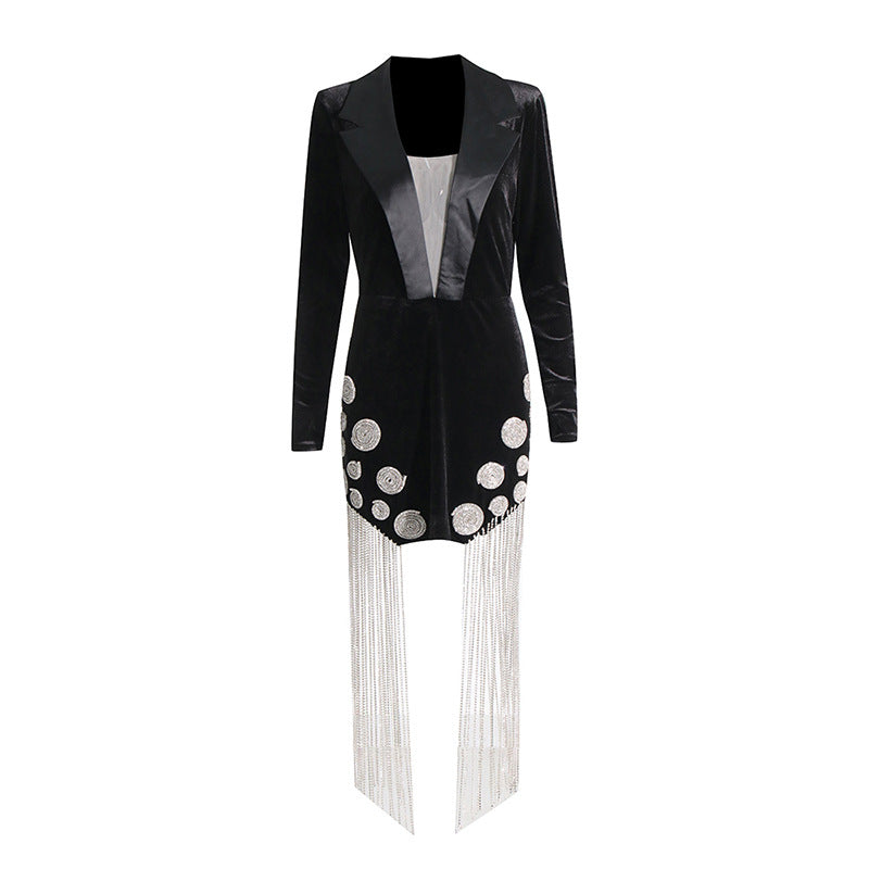 Sexy Suit Dress Women's Dress 2025 Spring New Heavy Industry Diamond Tud Escrow Splicing Long Sleeve Dress