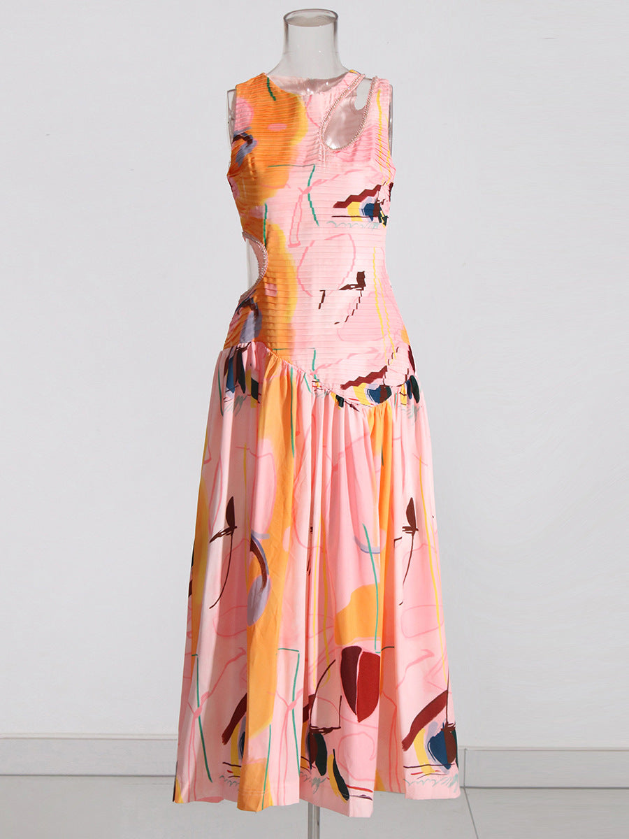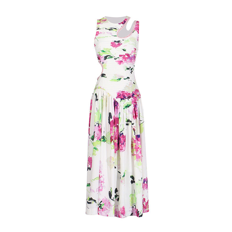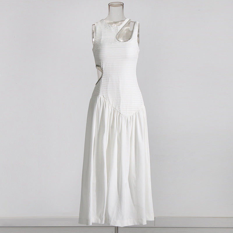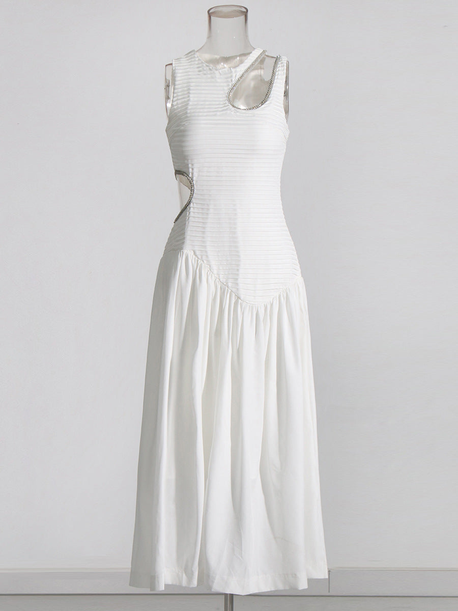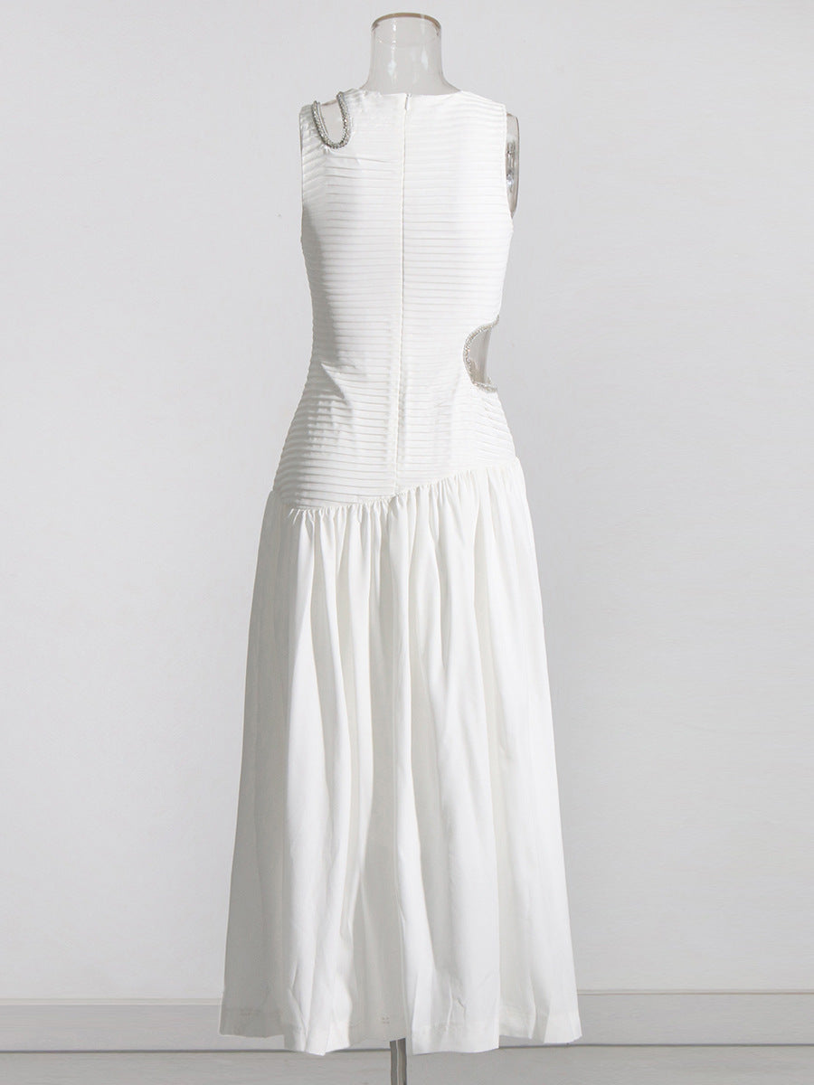 Sexy Wind Niche Design 2025 Summer Collar Hollow Folded Women's Dress In The Long Solid Color Folds