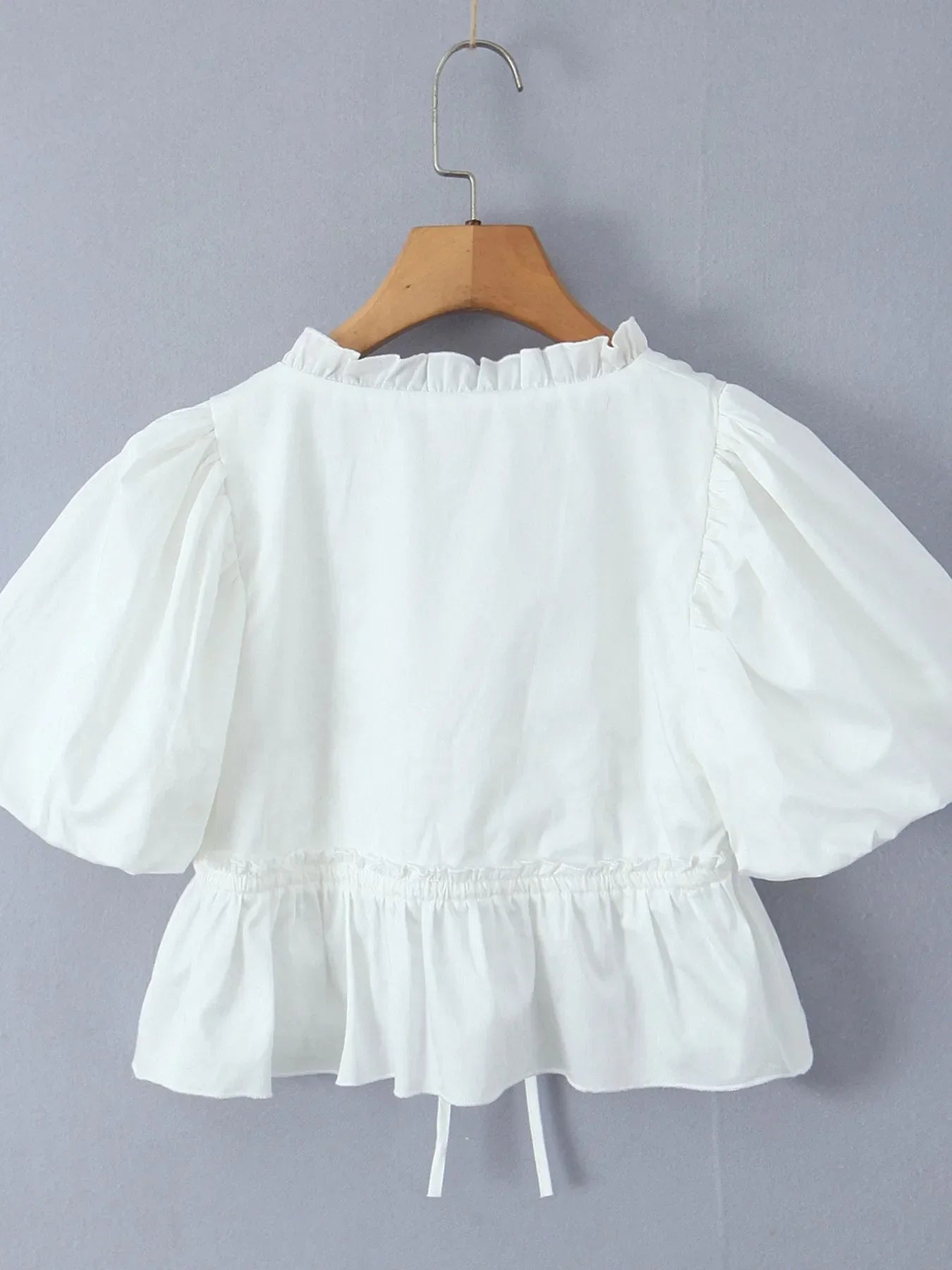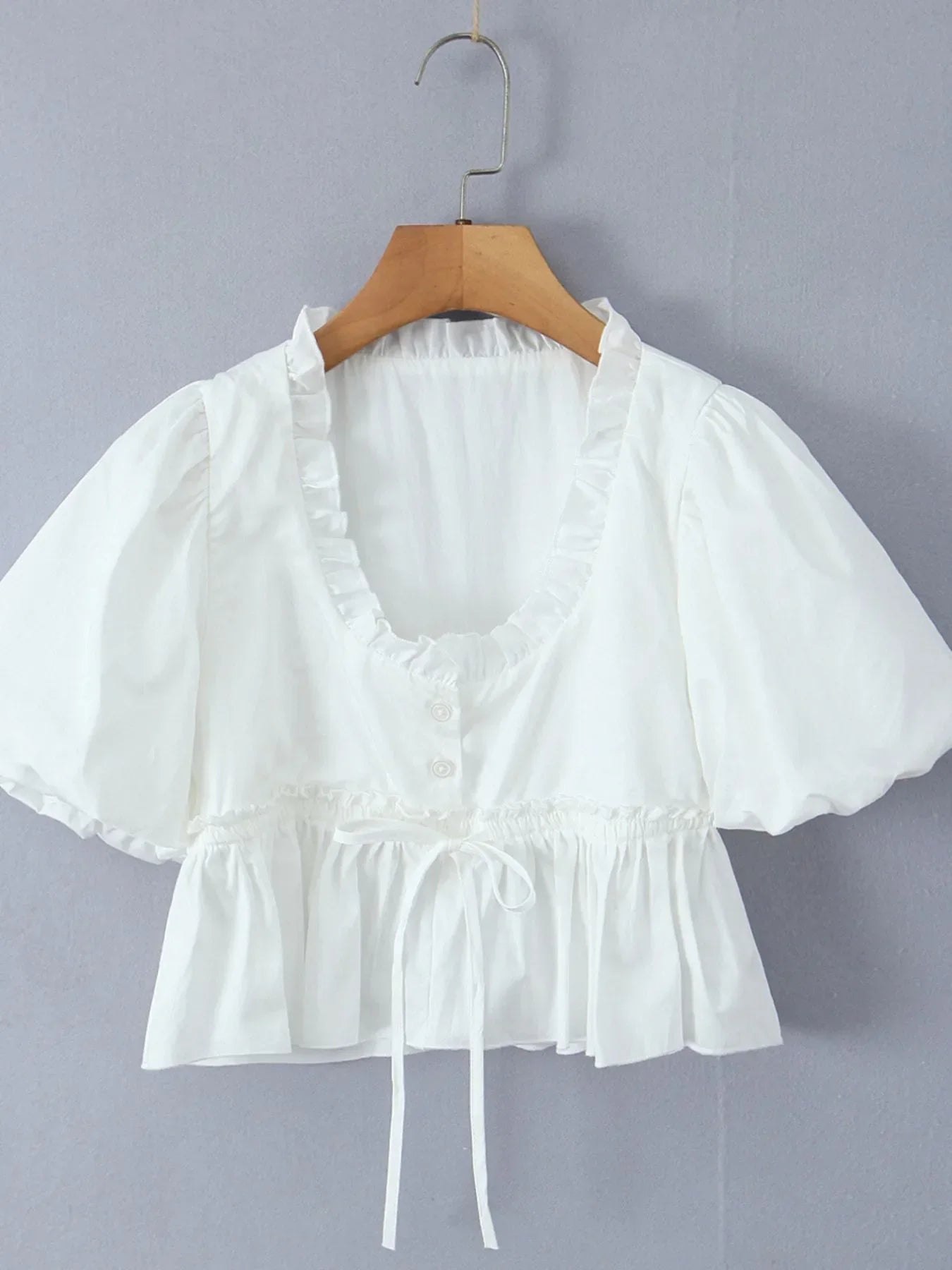 • Features:Tied,Frill,Ruffled,Buttoned