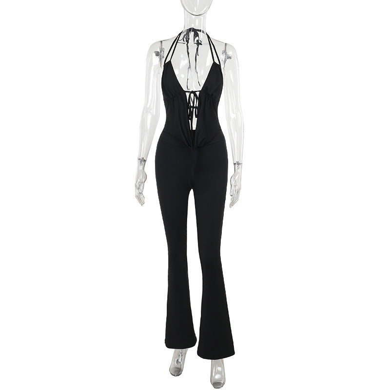 Sling Deep V-Tie Strap Hollow Conjoined Trousers Women 2025 New Hottie Jumpsuit DJPT