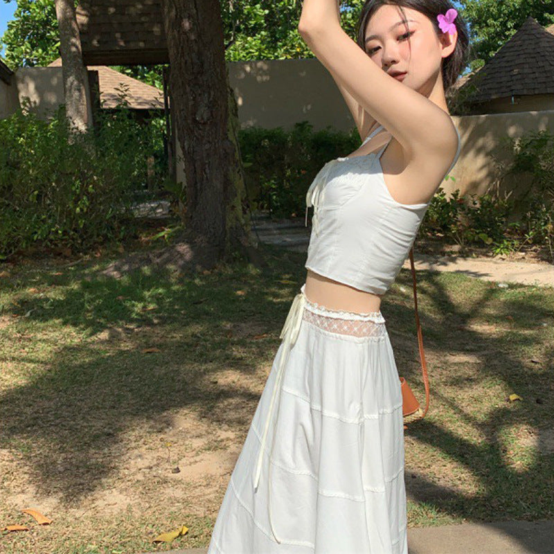 Sling Dress 2024 Summer New High-Rise Thin Holiday Dress Two-Set