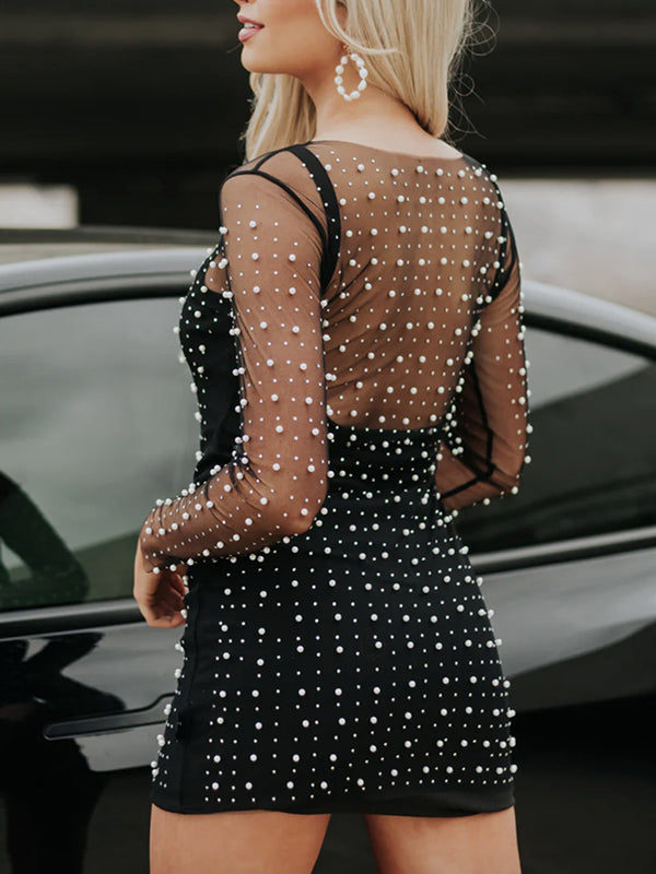 Solid Color Pear Rhinestone Sheer Long Sleeve Fashion Photoshoot Maternity Baby Shower Mini Dress Maternity