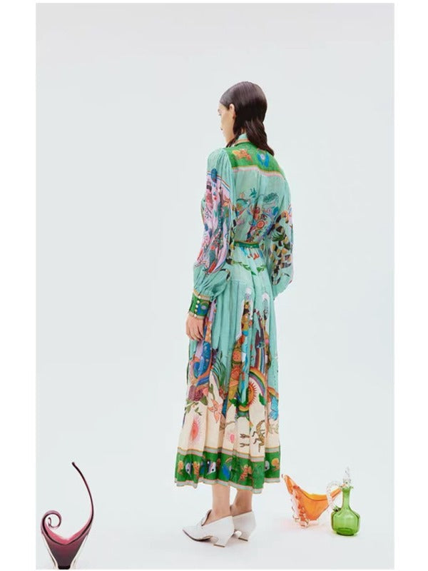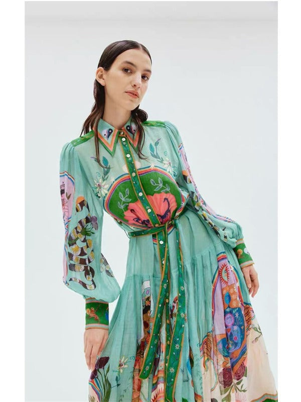 Spring And Summer Australian Niche Brand Ale Personality Print Daily Vacation Shirt Collar Single Buckle Flowing Dress