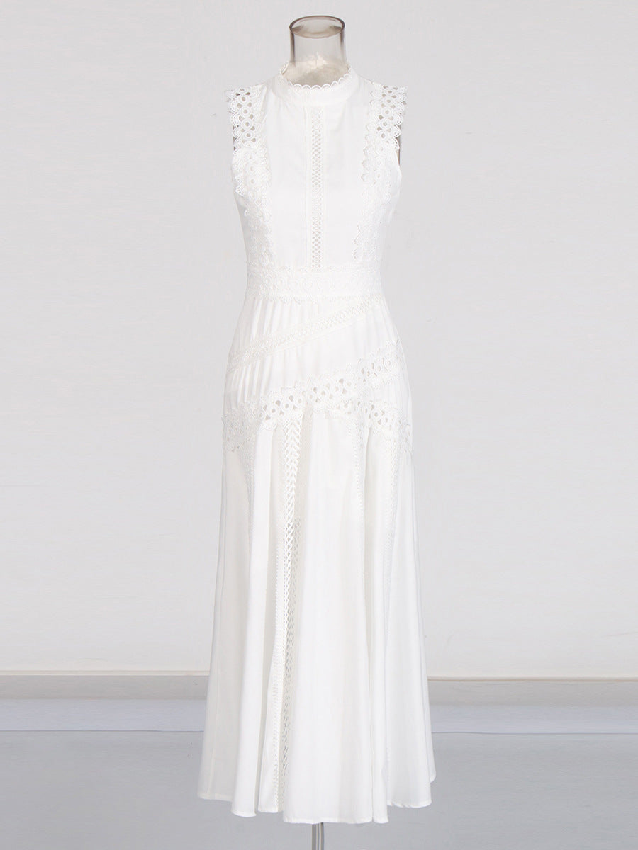 Style Dress 2025 Spring And Summer New Sleeveless Collar Sexy Lace Hollow Lotus Leaf Dress