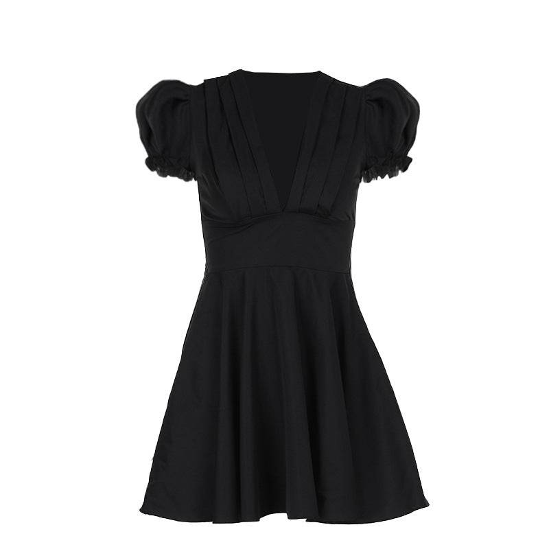 Summer 2025 New Fashion Style Style Bubble Sleeves And Waist V Neck Sexy Ponpong Dress Woman DJPT
