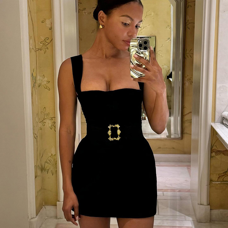 Summer 2025 New Sexy Bag Evening Dress Fashion Style Metal Accessory Vest Dress Woman DJPT