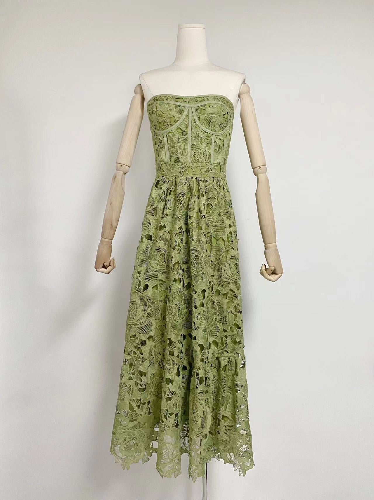 Summer New Fashion Sexy Breast-Stairs Embroidery Embroidery Hollow Dress Woman