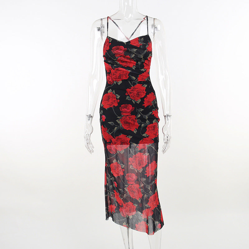 Summer New Fashion Women's Clothing Pastoral Fresh Temperament Body Print Sling Dress Dress DJPT