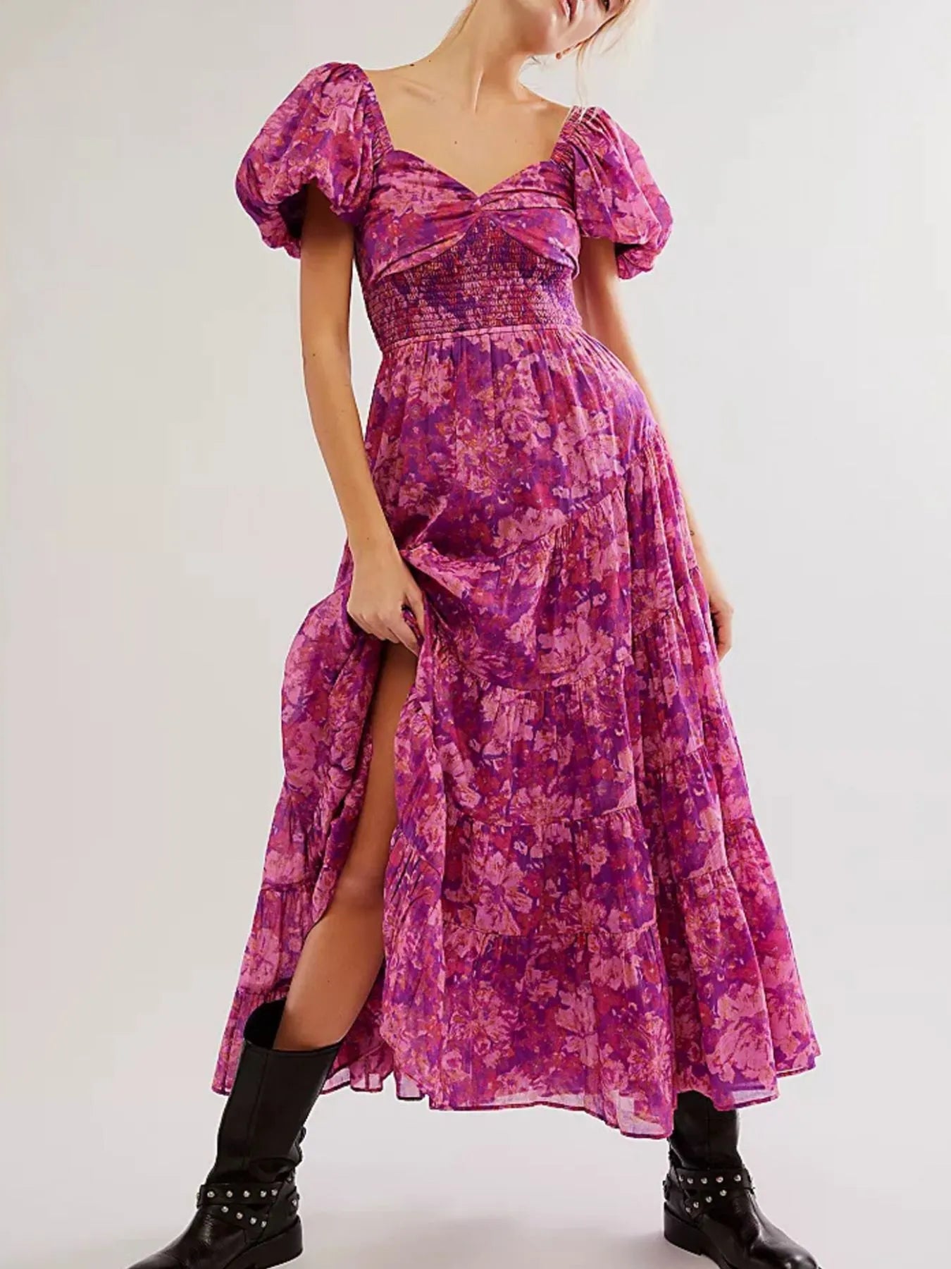 Sweetheart Neck Puff Sleeve Maxi Dress DJPT
