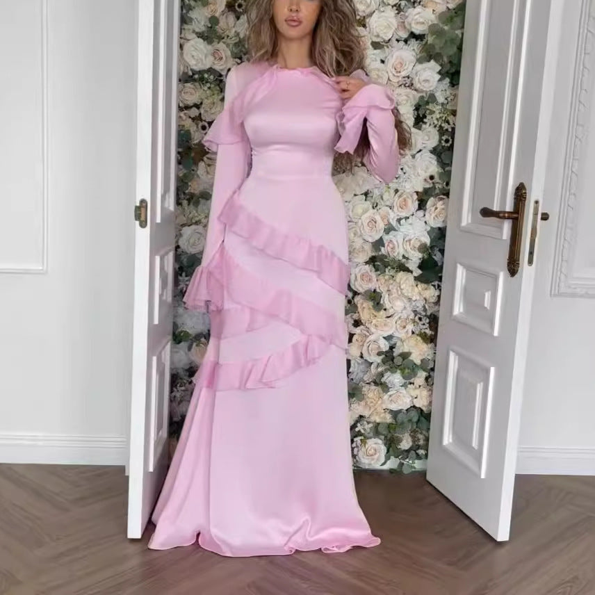 Temperament Autumn And Winter New Women's Clothing Stitching Rules Lotus Leaf Lace Bag Hip Dress