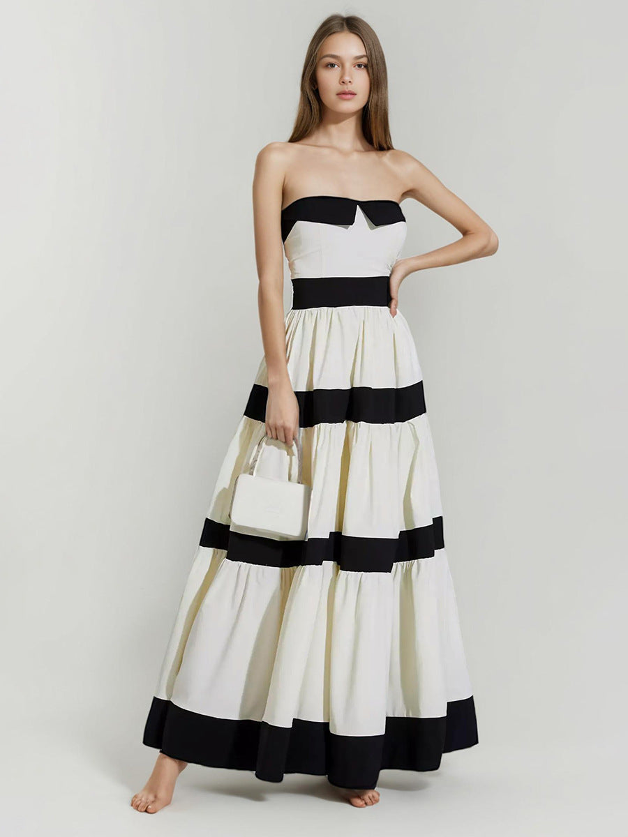 Temperament Elegant Goddess Style Dress Dress 2025 Spring New Braming Striped Bow Dress Woman