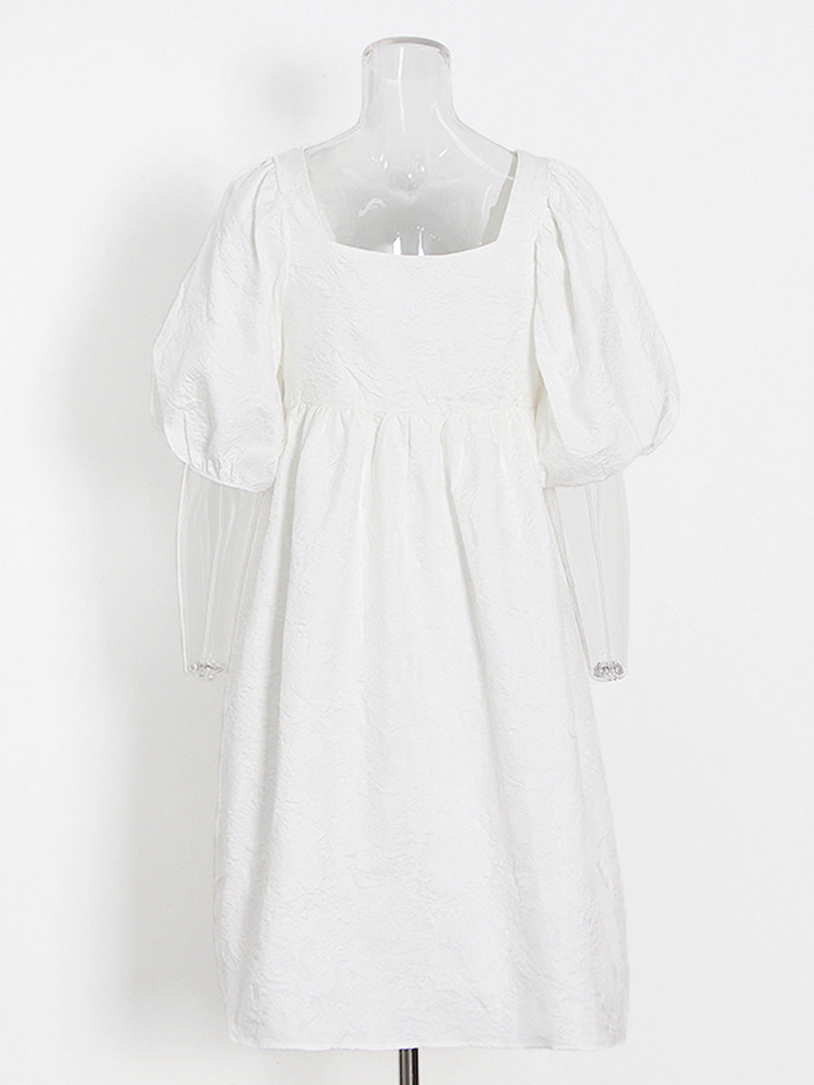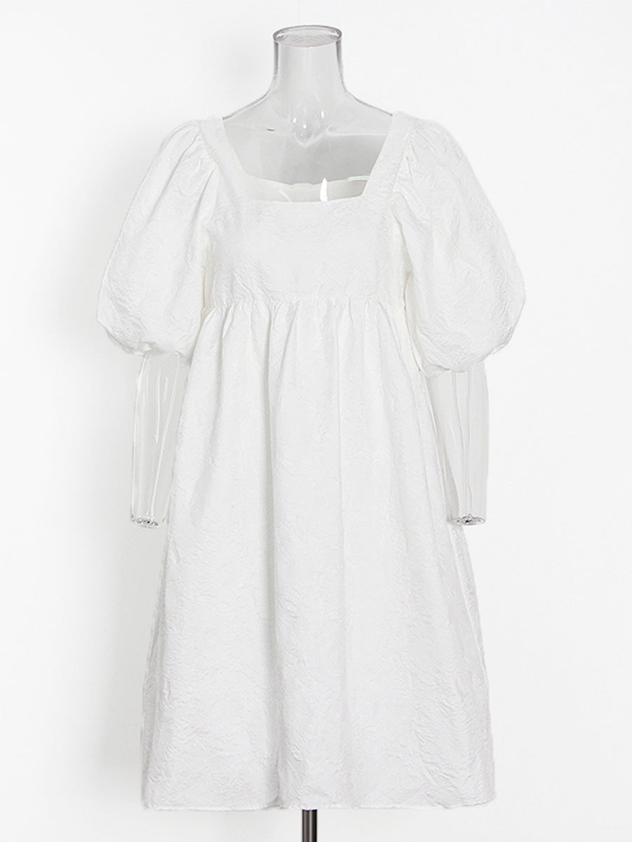 Temperament Fresh Sweet Style Dress Spring 2025 New Gentle High-End Collar Bubble Sleeve Short Dress Woman