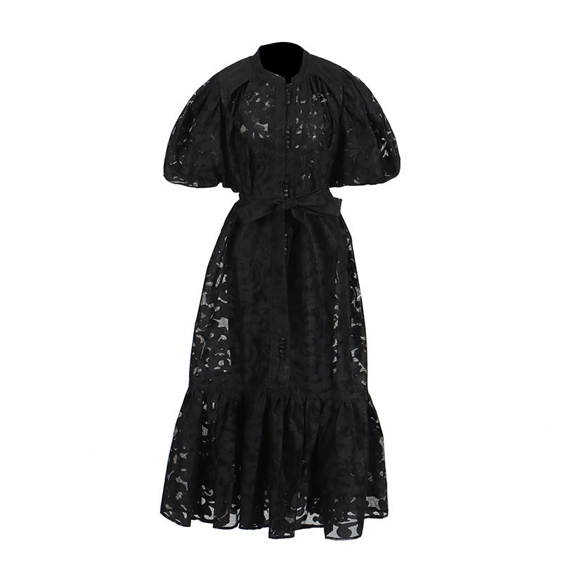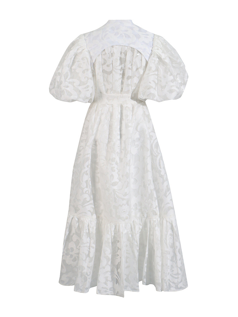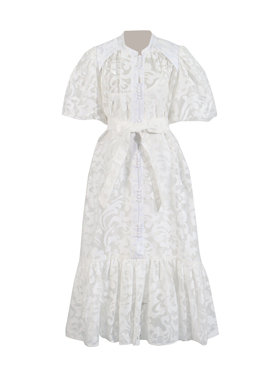 Vintage Elegant Dress 2025 Summer New Single-Rebutted Embroidered Printed Dress With Short Sleeve Dress Woman