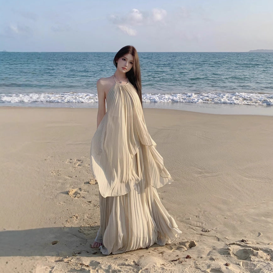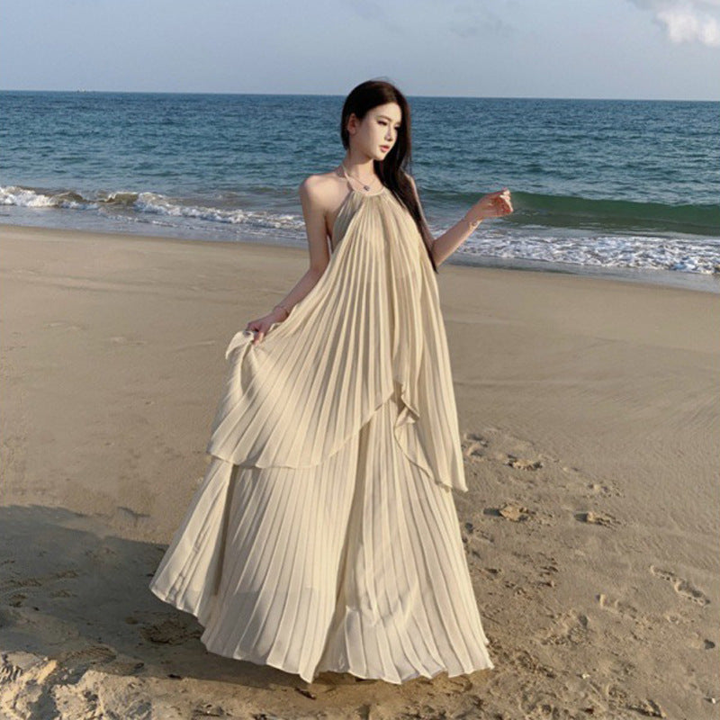 Wearing A Suit Hottie Bare Back Irregular Hanging Neck Vest Top Girl Summer 100 Folded Skirt Two Sets
