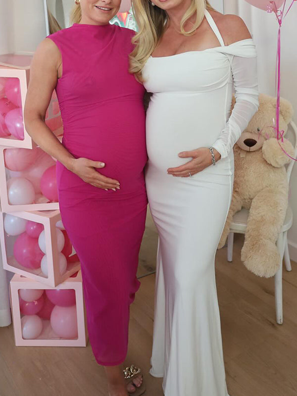 White Off Shoulder Halter Neck Bodycon Elegant Cocktail Maternity Baby Shower Maxi Dress Maternity