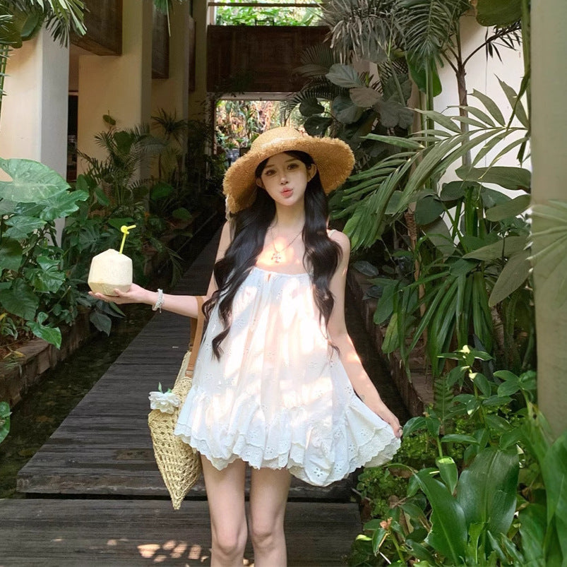 White Sling Dress Dress Female Summer Temperament Seaside Wind Fairy Irregular Doll Short Skirt