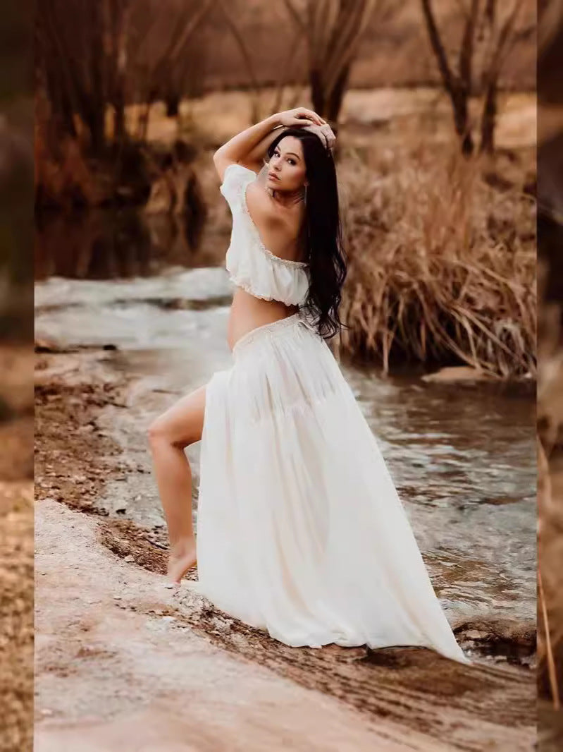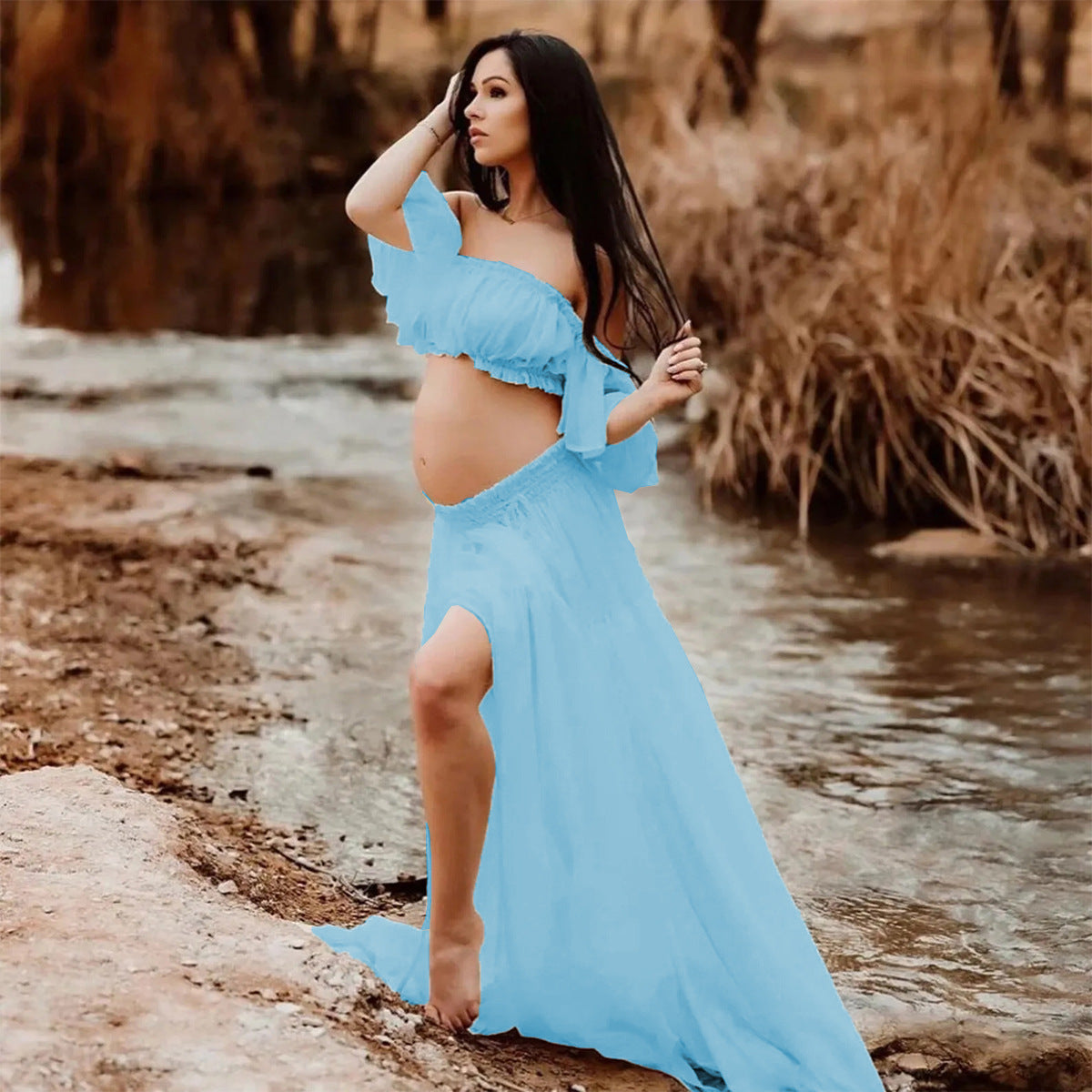 Women's Chiffon Up And Lower Split Suit Under The Fork Pregnant Photo Photography Drag Set 1247 Maternity