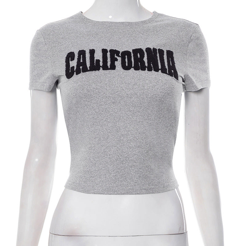 Women's Clothing 2025 Summer New Round Neck Short-Sleeved Letter Print Short-Sized Hottie Top DJPT