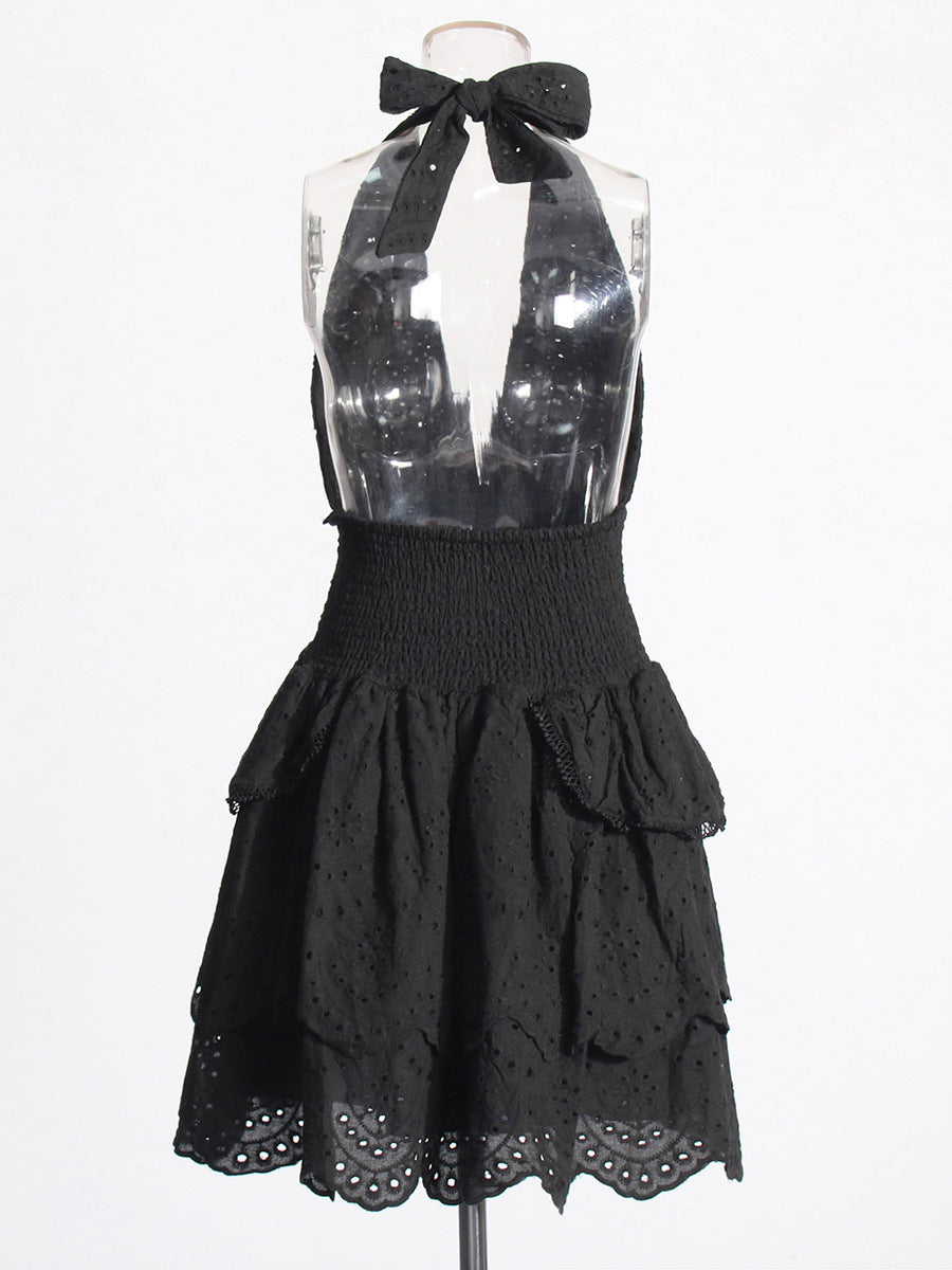 Women's Fashion Dress 2025 Spring New Women's Dress V Hanging Neck Sexy Embroidery Short Dresses