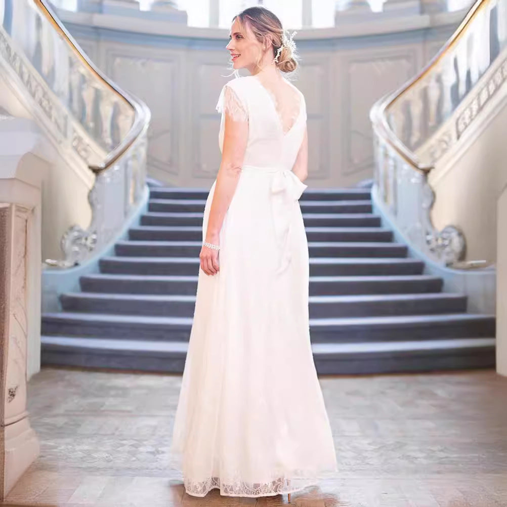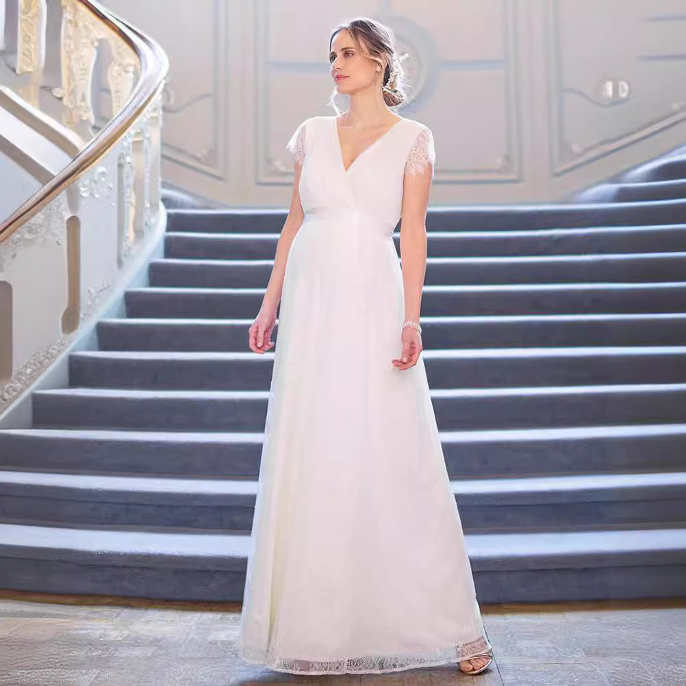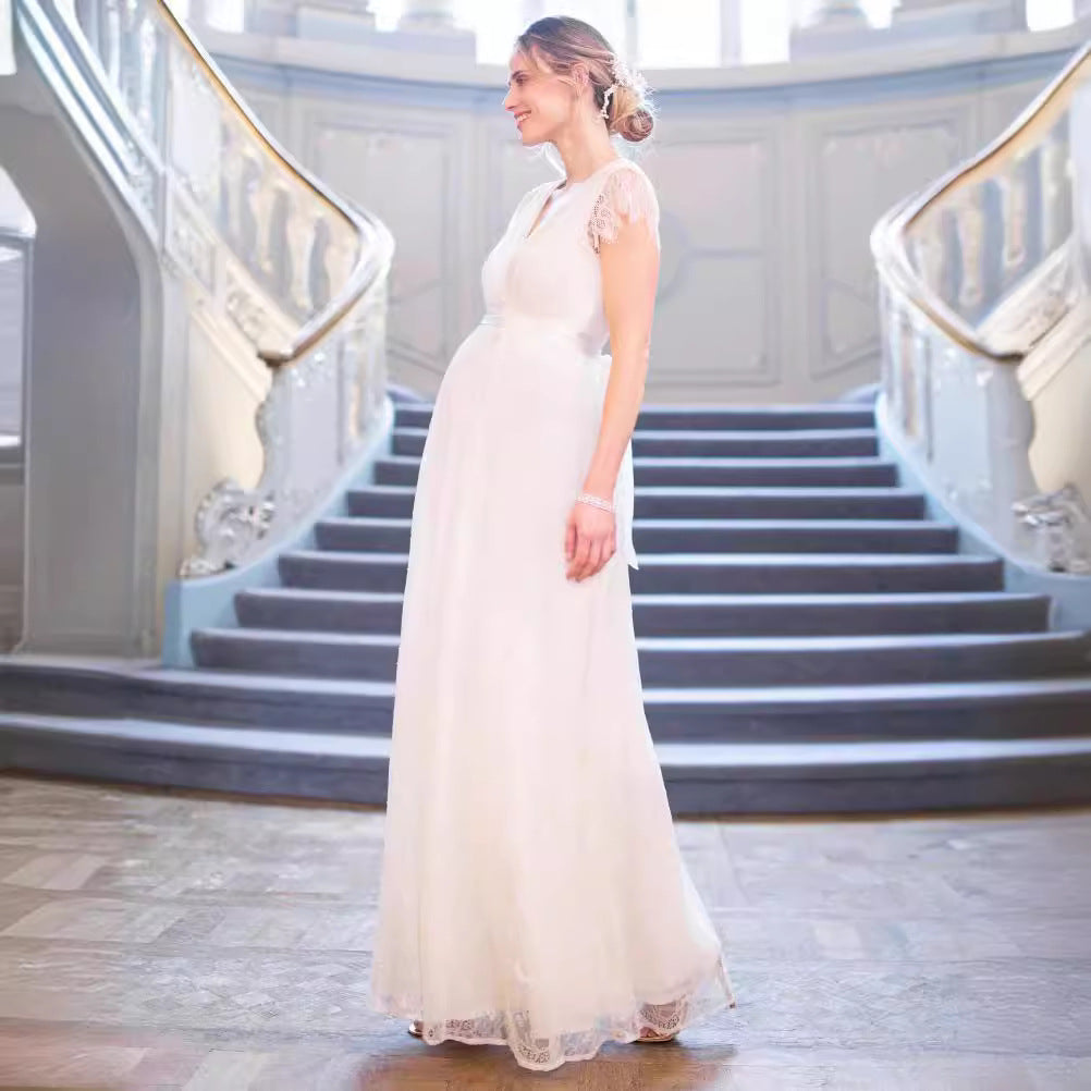 Women's Lace Pregnant Women's Lotus Leaf Side Short-Sleeved Dress Photography Flying Sleeve Dress 1108 Maternity