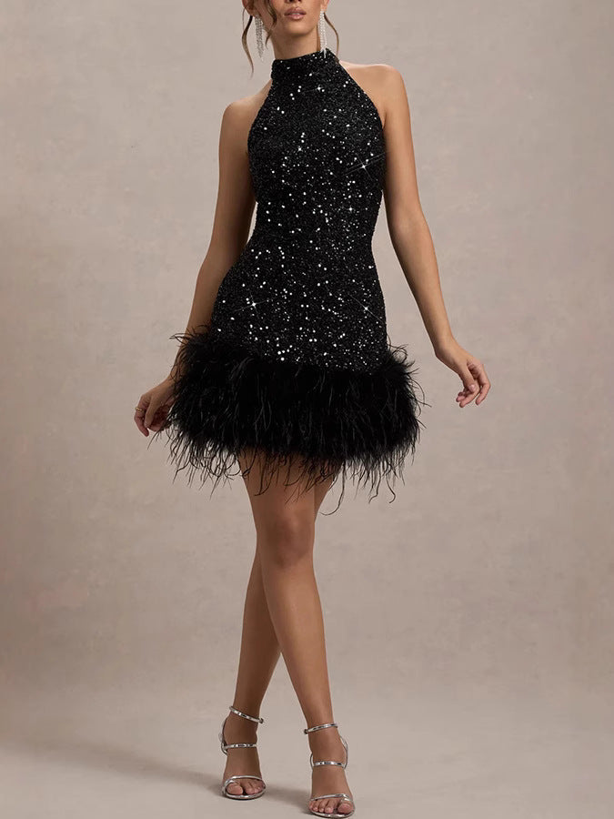 Women's New Sexy Sleeveless Body Shiny Plush Dress Dress Dress Glie 8105 HZ0628