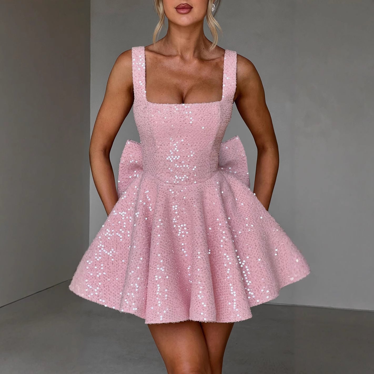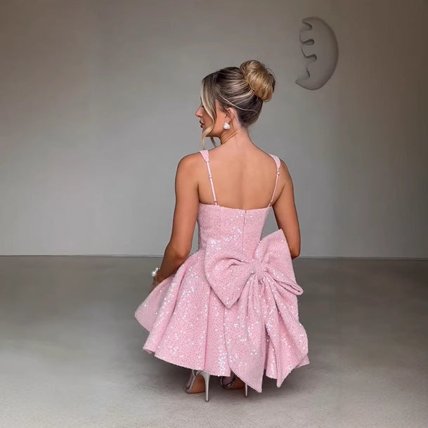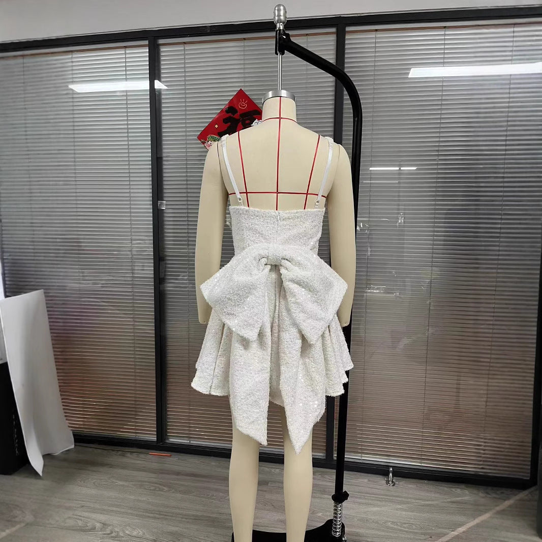 Women's New Sexy U-Neck Bow Bright A-Skirt HZ0628