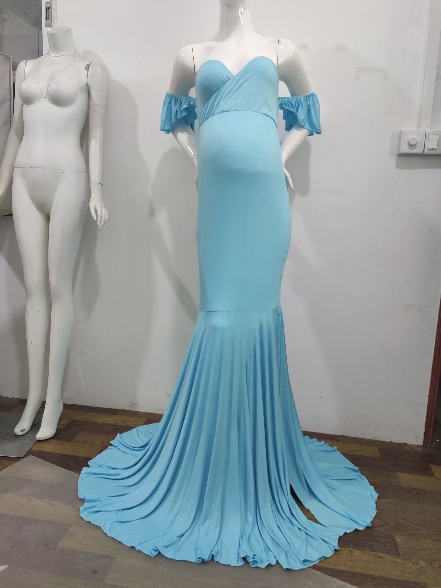 Women's Silk Cotton Pregnant Women Lotus Leaf Sleeves Cross V-Neck Tail Dress Photo Dress 1932 Maternity