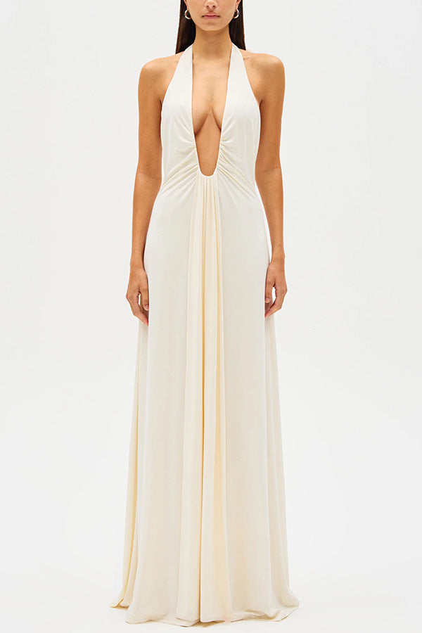 Women's Solid Color Sexy Perspective Low-Breastless Sleeveless Babes Dress Women 8075 HZ0628