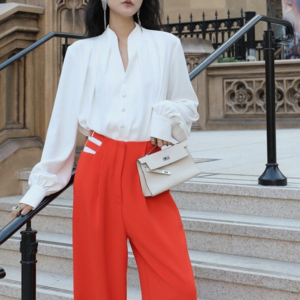 Zhao Sanguan Elegant Collar White Shirt Single-Drace Commuting Top 2024 New