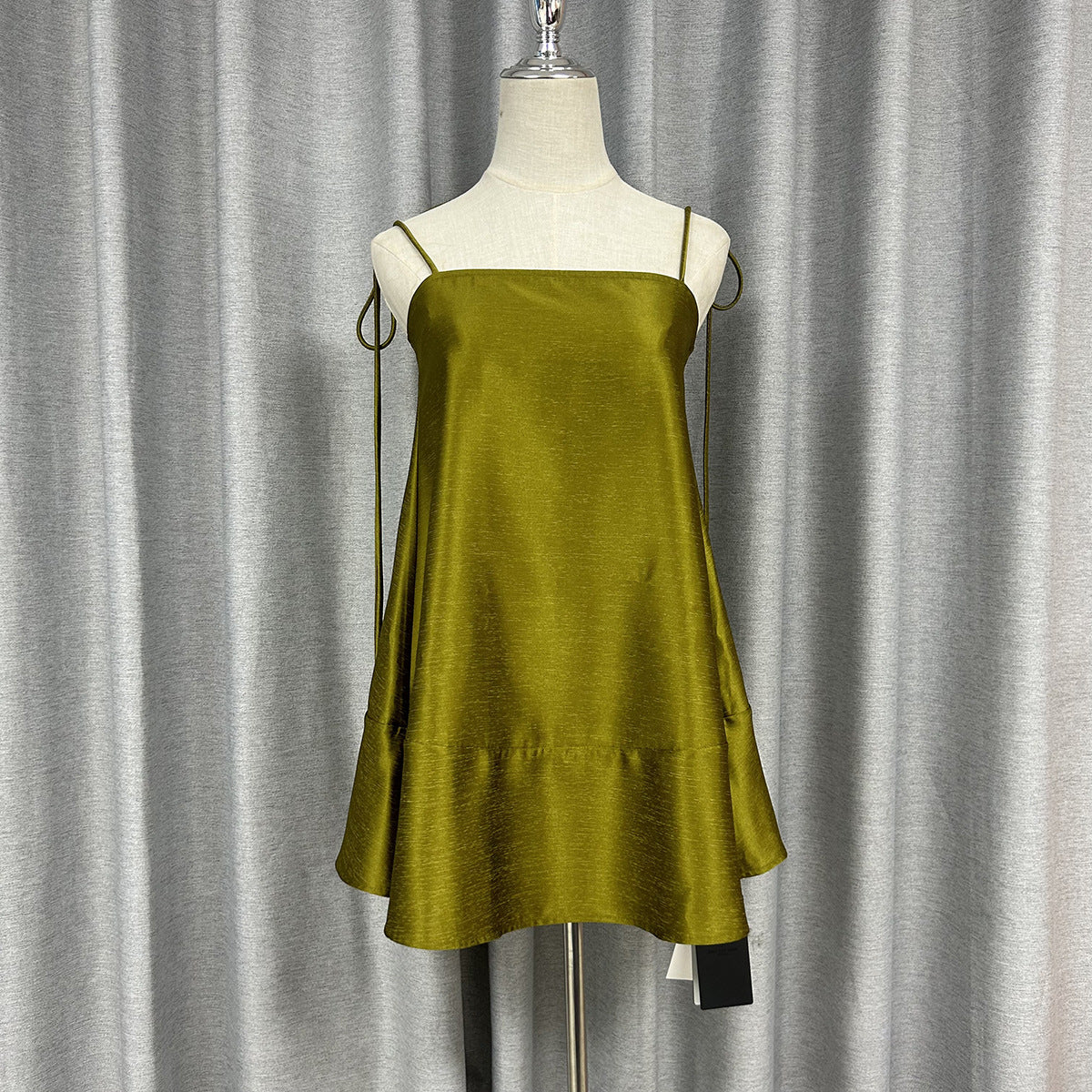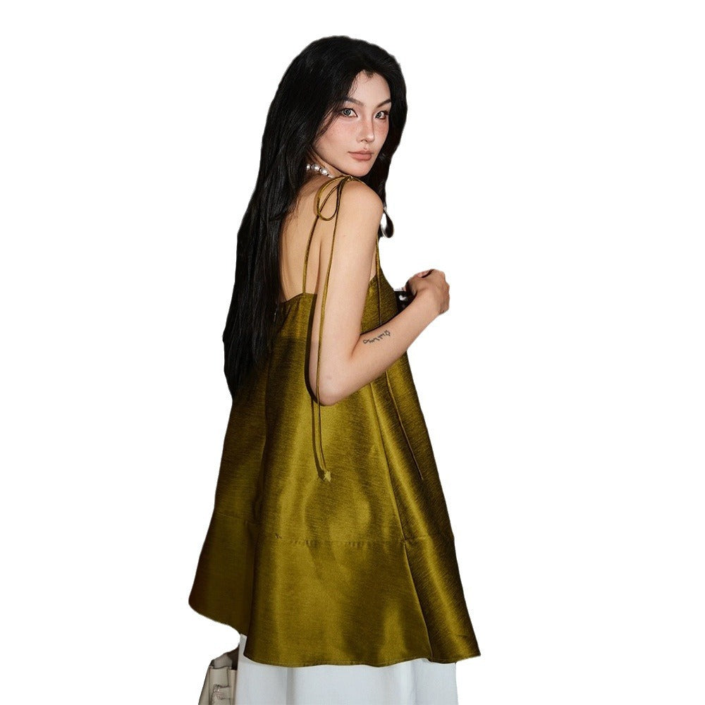 Zhao Sanguanjin Green High-End Sling Skirt One-Word Shoulder Loose Dress 2024 New
